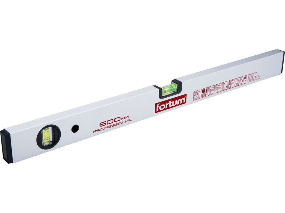 FORTUM vízmérték 0,5mm/m pontos ( alu.), elektronikusan kalibrált libella FORTUM; 600mm részletes leírása