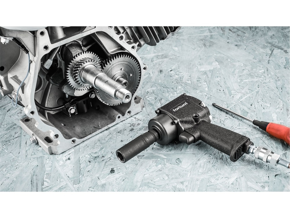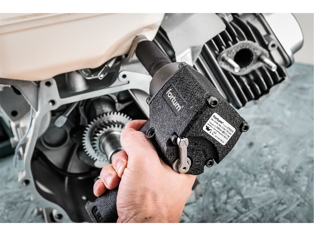 FORTUM légkulcs, 1/2', 610Nm, (Twin Hammer); 10.000 1/min, 170l/min, 6,3 Bar, 1/4' tömlőcsatlakozó, 1,4kg