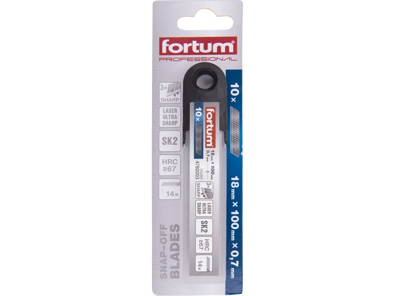 FORTUM pótpenge 10 db, fekete, tripla vágóéllel; 18×100×0,7mm, SK2 acél, HRC > 67, lézeres élezés