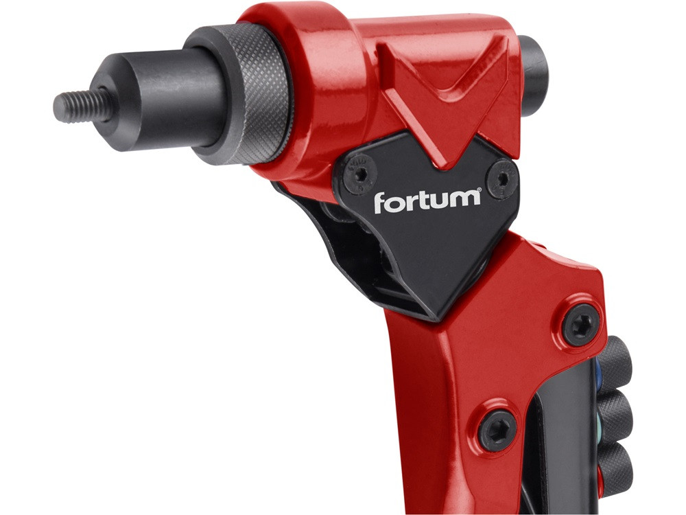FORTUM szegecsanya- és popszegecs húzó fogó, 2az1ben, forgatható fejű, kétkaros; 260 mm, CrVMo fej, FORTUM