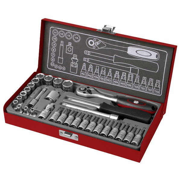 48 fogú racsni, INDUSTRIAL, 4-14mm dugófej, 12db bithdugófej (lapos, PH, imbusz, TORX), 50-100mm hosszabbító szár, csukló, csavarhúzó markolat