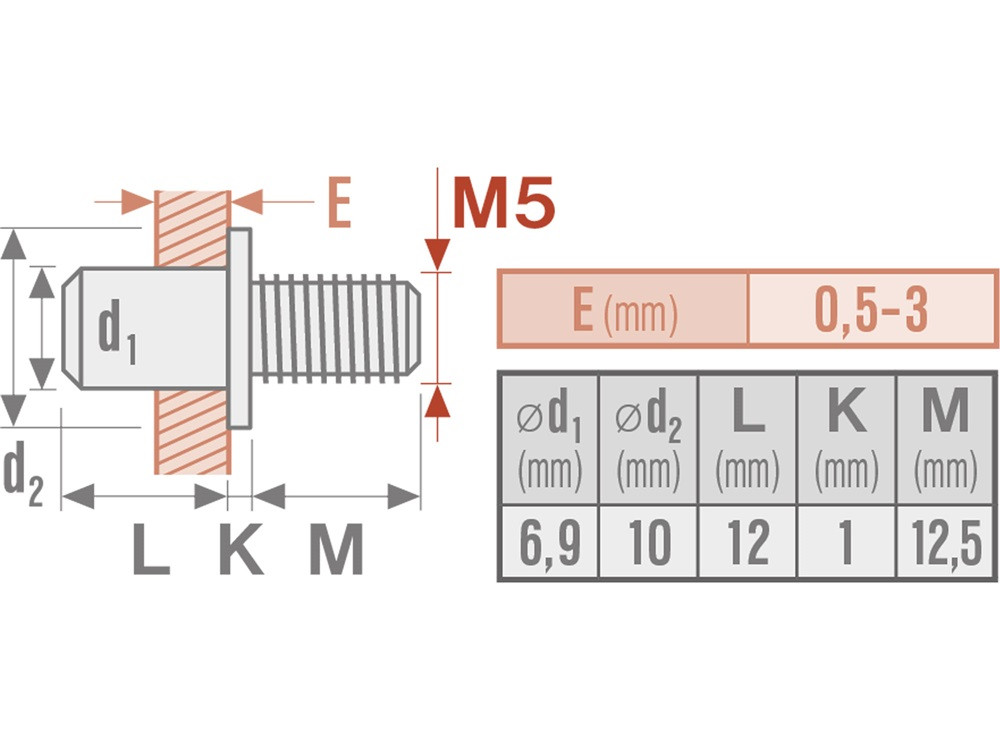 FORTUM szegecscsavar klt. 50 db, M5, horganyzott acél FORTUM