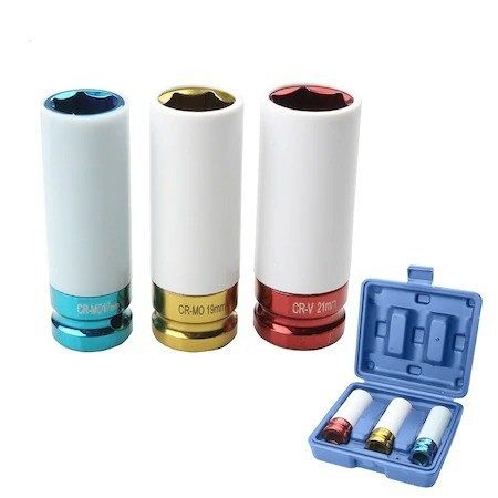 A kerékanyavédő ütközésgátló foglalat nem hagy karcolást vagy kopásnyomot a csavarok tetején így a felnik a lehető legjobban néznek ki. Védve van az anya és a felni is a teflon bevonat által.