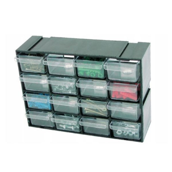 Ez a rendszerező ideális választás kis méretű csavarok és alátétek tárolására. Jól használható a garázsban, fészerben, szerelőműhelyekben is. A fiókok átlátszó műanyagból készültek, így jól látható, hogy mit tartalmaznak.