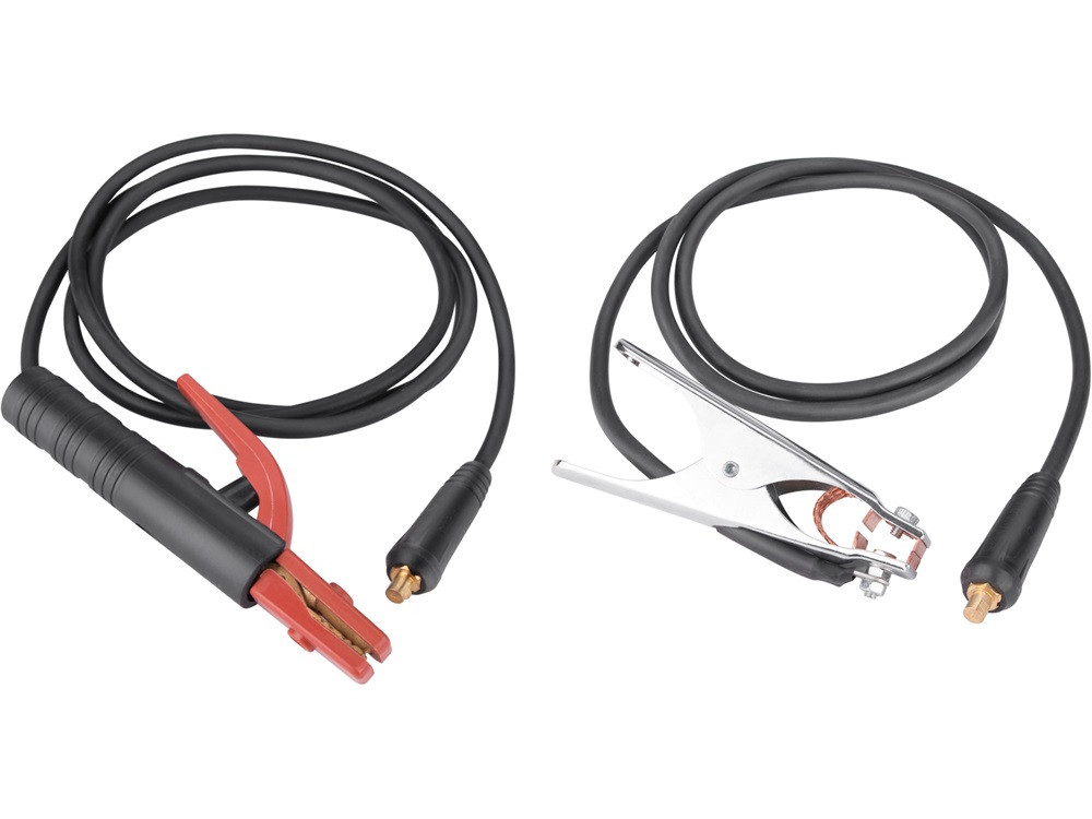 hegesztő kábelpár, földelőkábel csipesszel + munkakábel elektródafogóval, 120A, 5m, 16mm2, csatlakozó: 10-25