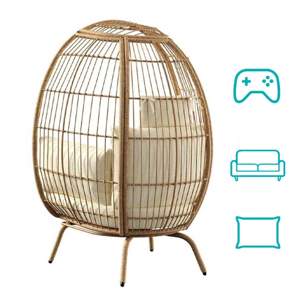 Fonott, rattan fotelünk párnázott ülőfelületével gondoskodik a maximális kényelmedről és stílusos kiegészítője lesz kertednek, teraszodnak vagy akár nappalidnak is. Széles kialakításának köszönhetően kényelmesen bekuckózhatsz pihenni vagy olvasni is. A szék váza fémből készült, a lábakon elhelyezett csúszásgátló bevonat megvédi a padlózatot és a szék lábait egyaránt a karcolódástól. Vastag, párnázott ülőfelülete rendkívüli kényelmet garantál. A párnahuzat cipzárral van ellátva, így könnyen levehető, 30 C°-on mosható, 110 C°-on vasalható. Lehetőség szerint tisztítás után fogason, függőlegesen szárítsd. A párnahuzat nem fehéríthető.