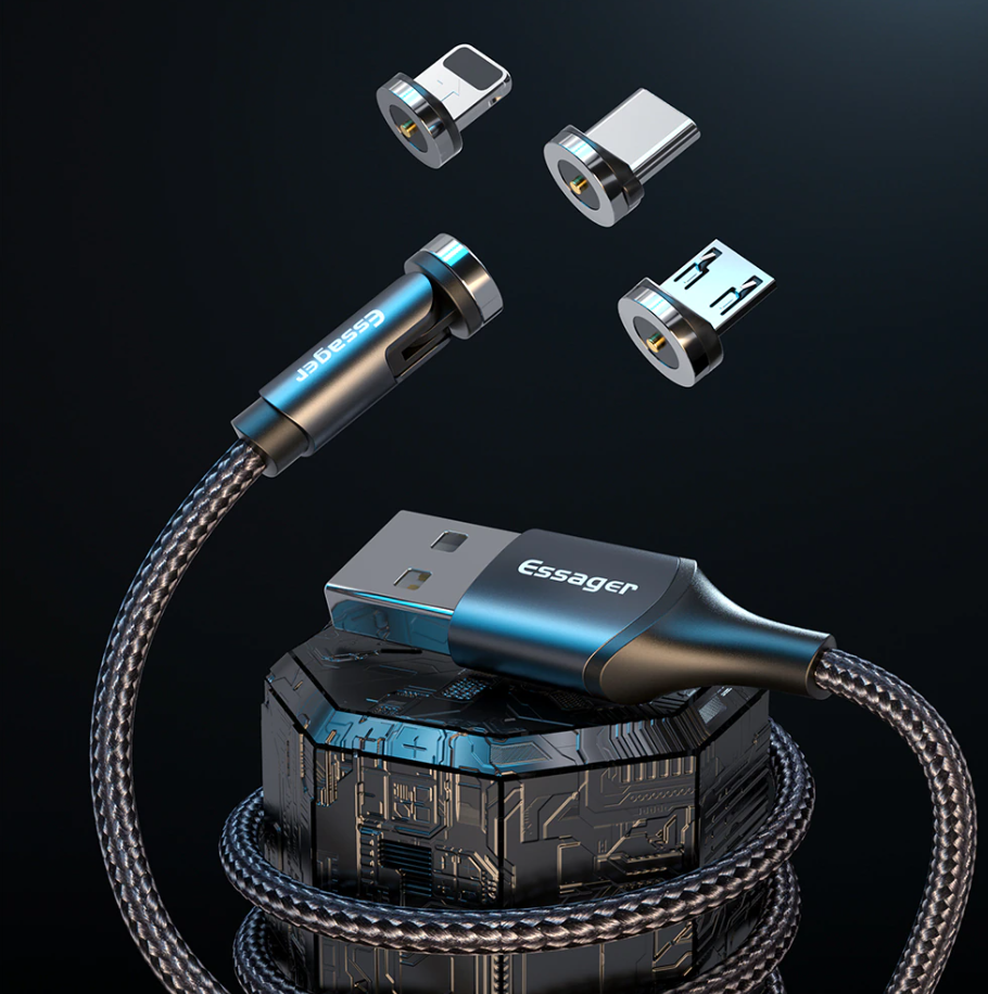 1 db forgatható mágneses töltőt, aminek a telefonhoz csatlakoztatható része mágnesesen kapcsolható a teljes kábelhez