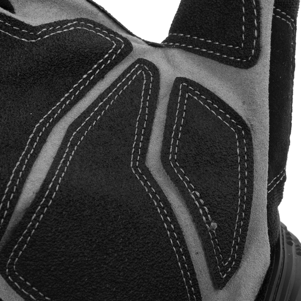PVC betétes tenyér résszel ellátott, melynek megerősített varrása és érintőképernyővel kompatibilis ujjvégei vannak. Rugalmas spandex anyagú kézháttal lett ellátva, amely teljes biztonságot és komfortot biztosít viseléskor. A stabil rögzítést erős tépőzár biztosítja.