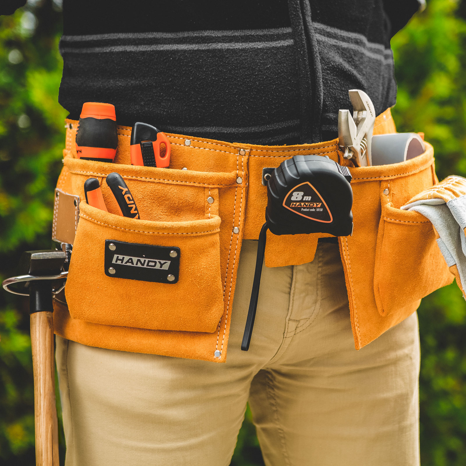 Minőségi, hasított bőrből készült szerszámtartó öv. Egy-egy munkafolyamat során szükséges szerszámot mindig magadnál tudhatod, így nem szükséges visszajárni a szerszámosládához a megfelelő eszközért. A hasított bőr és a szegecselések kellő merevséget és strapabíróságot adnak, ugyanakkor kényelmes viseletet biztosítanak munka közben.