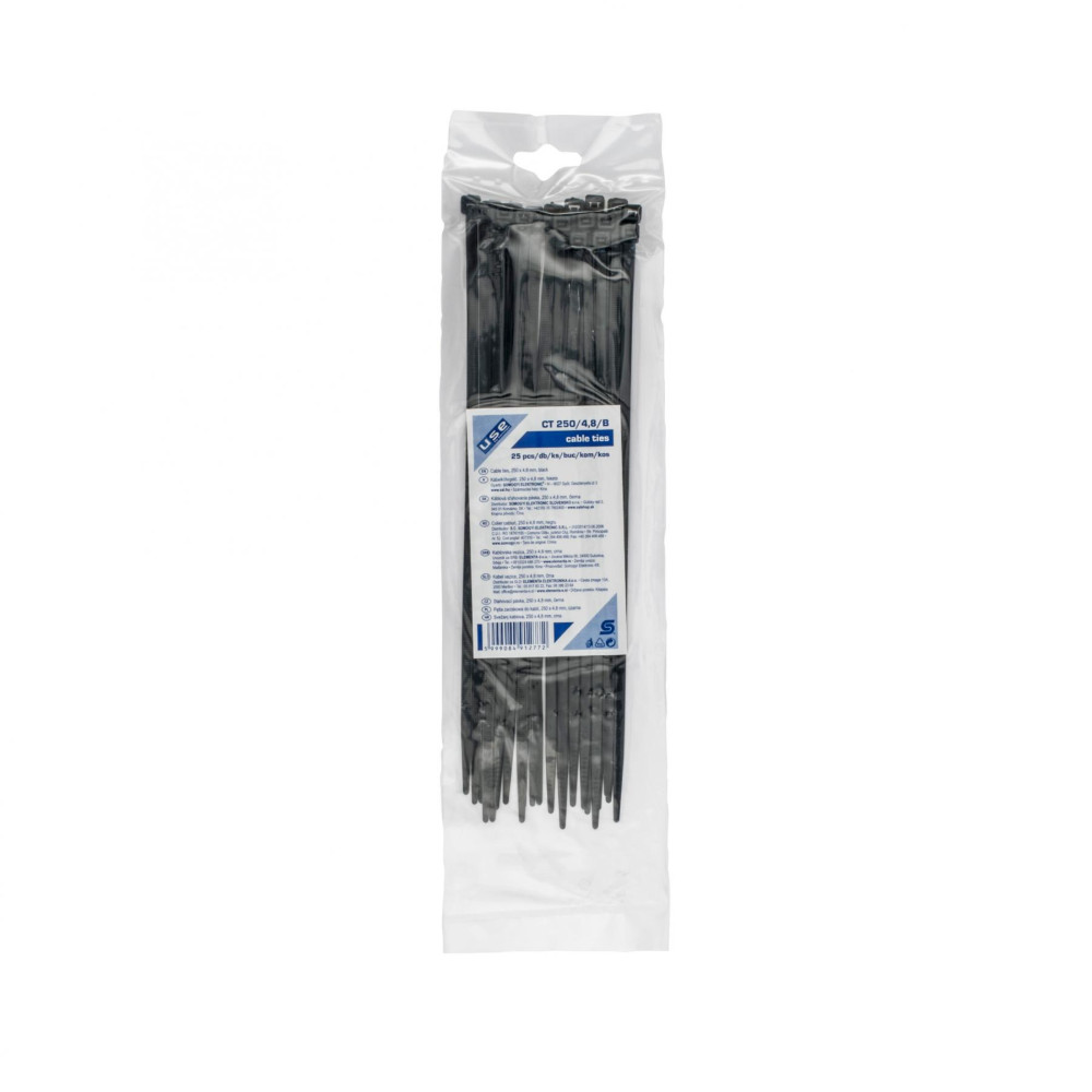 Home CT 250/4,8/B kábelkötegelő, 4,8 mm széles, 250 mm hosszú, 25 db, fekete
