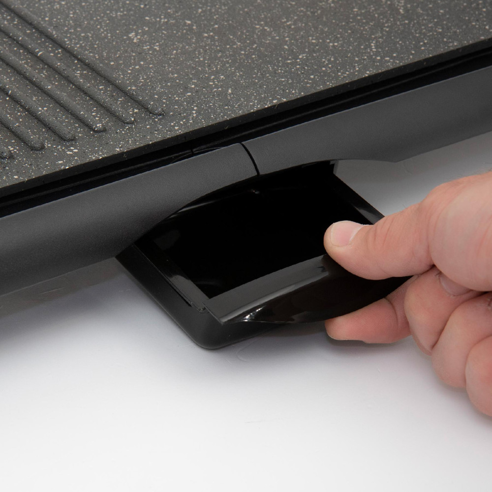 2000 W teljesítményű, így gyorsan megsütheti a kedvenc grill ételeit. A bordázott és sima sütőfelület lehetővé teszi a különféle élelmiszerek elkészítését.