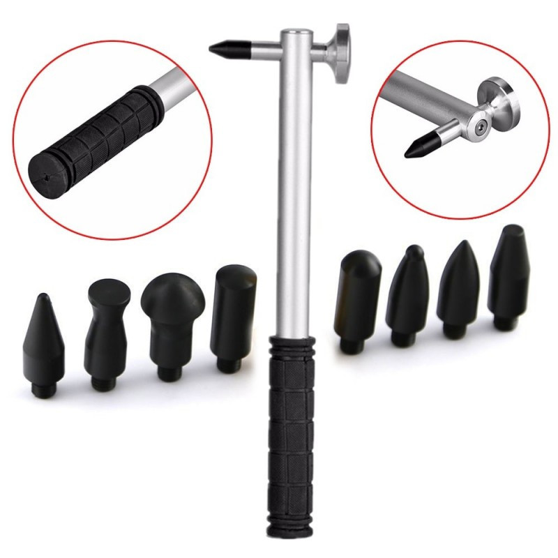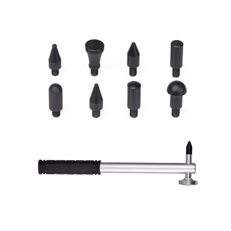 Semmi probléma. Nem kell vagyonokat fizetni karosszériásnak, oldd meg otthon könnyedén. Ez az eszköz segít kikalapálni a hibákat, egyszerűen csak rá kell ragasztani a felületre és kihúzni a horpadást, miután ez megvan, a gumis végével kikalapálni a finomabb mélyedéseket.