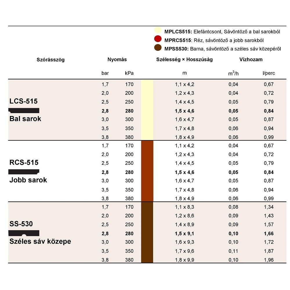 Hunter MP Rotator sávöntöző, sávszóró fúvóka MP-LCS-515 - rögzített, 1,5 x 4,6 m - bal sarokból