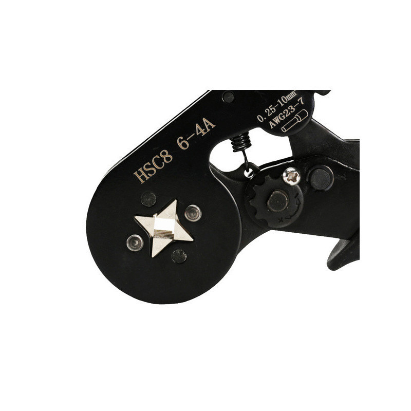 A Kábelnyomó Prés egy sokoldalú eszköz, amely kezeli a kábel keresztmetszetét 0,25mm²-től 10mm²-ig. Legyen szó otthoni vagy szakmai elektromos projektekről, ez az eszköz könnyedén kezeli a különböző kábeltípusokat. Az ergonomikus kialakítású fogantyújával és precíz nyomó mechanizmusával a mi présünk biztosítja a megbízható és tartós csatlakozásokat. Biztos lehetsz benne, hogy a kábelcsatlakozásaid biztonságosak és megbízhatóak.