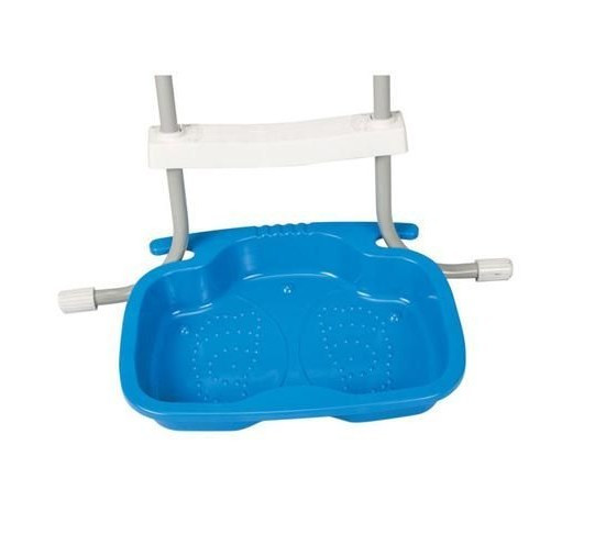 A lábmosó könnyedén a medencelétra lábai közé helyezhető és rögzíthető. Csúszásmentes belső borítással rendelkezik, így nem kell aggódnod amiatt, hogy megcsúszik a lábad. Csupán töltsd meg vízzel, használd medencébe lépés előtt és már csobbanhatsz is!