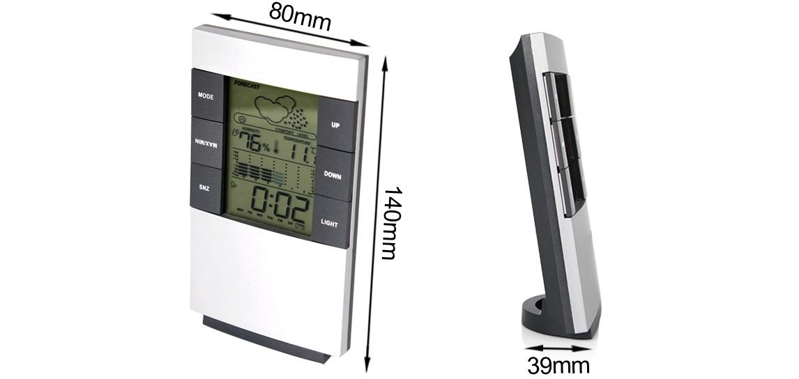 A termék megjeleníti a pontos külső és belső hőmérsékletet, páratartalmat, az aktuális időt és dátumot, valamint időjárás-előrejelzést is nyújt. A megvilágított LCD kijelzőjéről bármikor, akár éjszaka is könnyedén leolvashatod az adatokat.