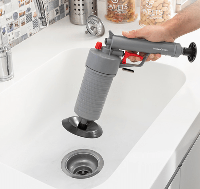 A hatékony InnovaGoods sűrített levegős duguláselhárító pisztoly a legjobb megoldás a felhalmozódott szennyeződések könnyű eltávolítására a konyhádban, fürdőszobádban vagy a teraszon.