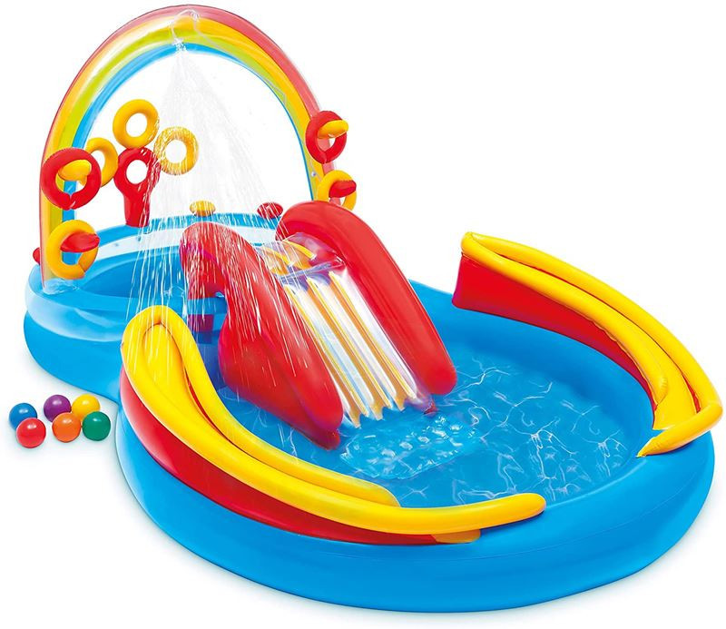 Szivárványos vízi játszótér, gyerekeknek, minőségi anyagból, a legújabb trendek szerint kialakítva.