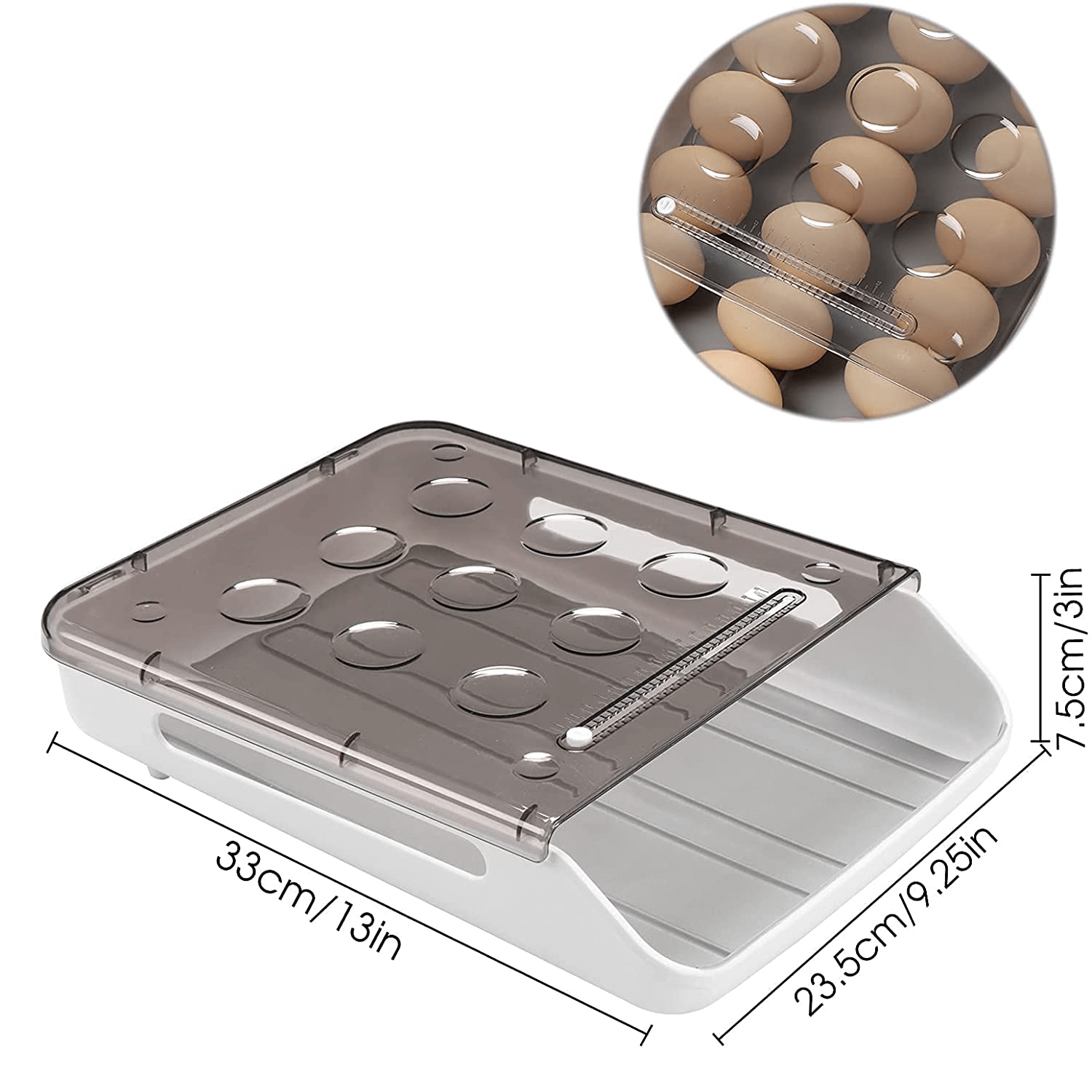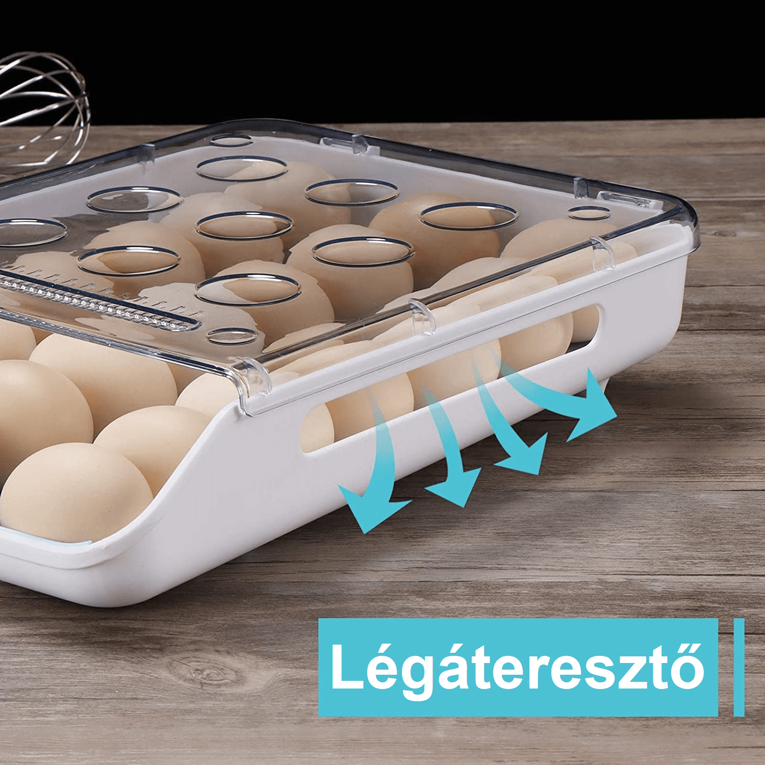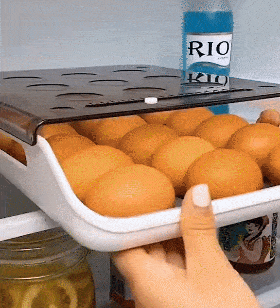 Intelligens tojástartó: Új fiókos kialakítású rendszerező, a tojások automatikusan lefelé gördülnek, könnyű működés még a hűtőszekrény magas részén is, fagyasztóban, kamrában, hűtőszekrényben, konyhaszekrényekben, pulton, kempingben és piknikezésnél is használható.