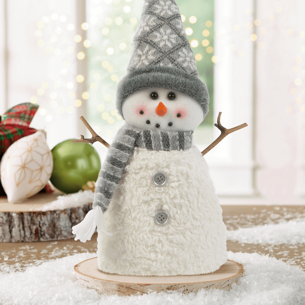 Szövet anyagának köszönhetően nagyon puha figura, amely karácsony alkalmával fel is öltözött. A hóemberen található egy csíkos sál, és egy választható sapka. A csúcsos sapka drótos, így állítható milyen szögben álljon. Kompakt mérete által a termék bárhová elhelyezhető beltéren. Díszítsd polcodat, asztalodat, kandallódat, vagy akár konyhapultoad ezzel az aranyos figurával, a kütyü garantáltan meghozza a karácsonyi szellemet otthonodba.