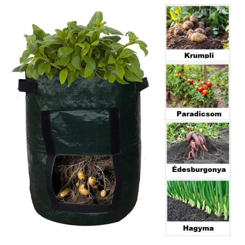 Használata nagyon egyszerű, csak töltsd tele a zsákot termékeny földdel, majd vesd el benne a kívánt zöldség vagy gyümölcs magvait, és csodáld meg, ahogy kis idő múlva kész terméssé alakul! Az oldalsó zsebnek köszönhetően, akár krumplit vagy répát is ültethetsz, hiszen az oldalsó nyitható ablakon keresztül könnyedén betakaríthatod a föld alatt nőtt zöldségeket is. Az ültetőzsákkal egyszerűen betakaríthatod a friss egészséges finomságokat, melyek mehetnek egyenesen az asztalra!