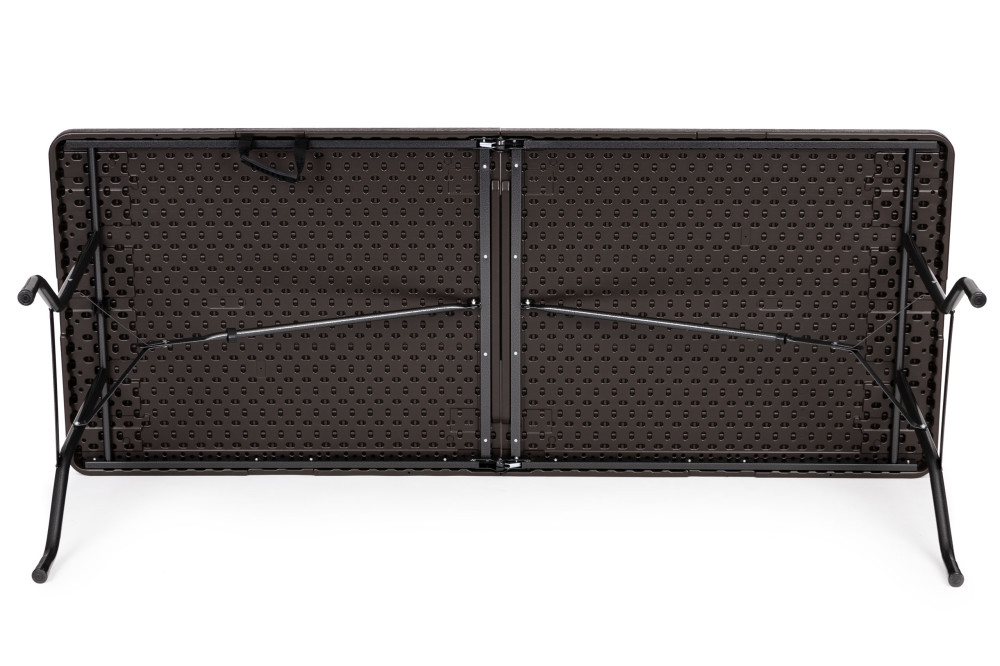 Különleges összecsukható rendszernek köszönhetően az asztalt kofferré lehet alakítani és az összeszerelés maga 20 másodpercet vesz igénybe. Ez a funkcionalitás lehetővé teszi az asztal könnyű tárolását, jó választás utazáshoz és szabadtéri piknikekhez is.