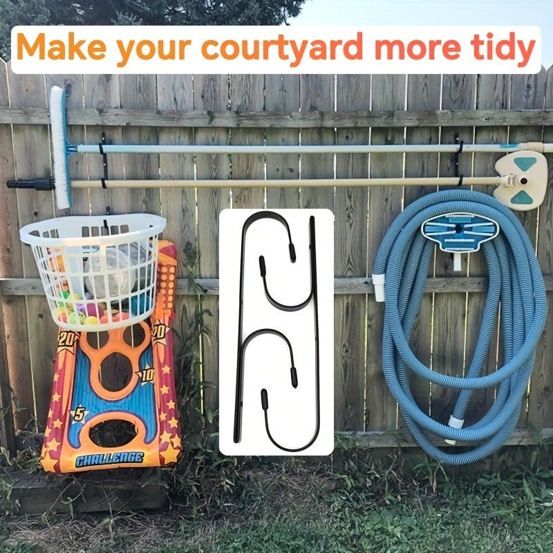 Ezzel a 2db Kerti szerszámtartó horoggal mindent kéznél tarthatsz a kert körül! Könnyedén tárolhatod a skimmereket, levélgereblyéket, hálókat, keféket, locsolótömlőket és egyebeket. Ezek a fekete akasztók kiválóan passzolnak minden kerthez, és nélkülözhetetlenek a kerti szerszámok és úszómedence kiegészítők rendszerezéséhez.