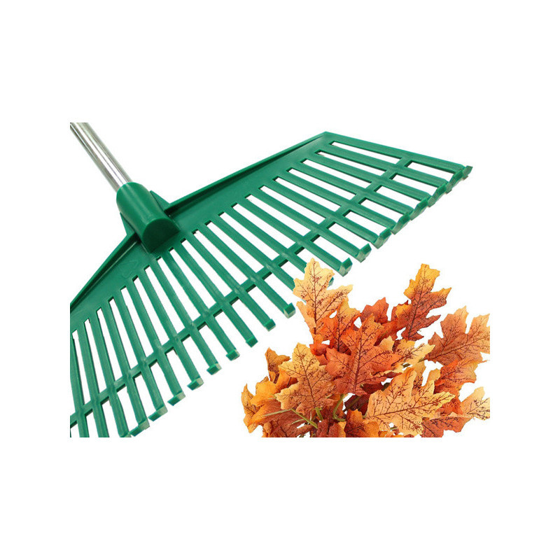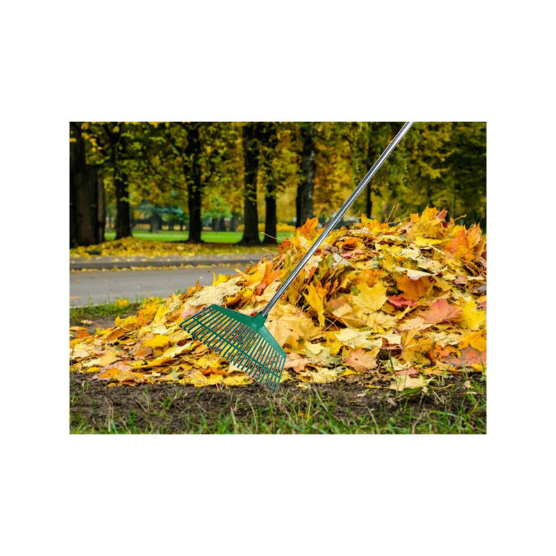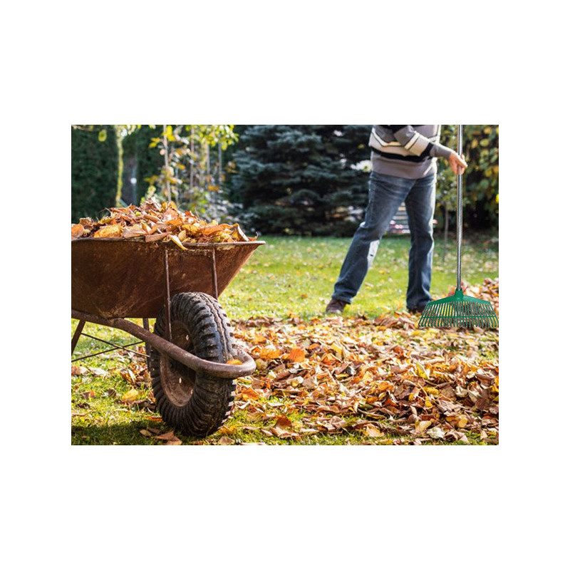 A kertgereblye a fűlevelek gyűjtésére ideális, könnyű műanyag nyéllel és alumínium fejjel. A praktikus eszköz segítségével összeszedheted a fenyőtűket, tobozokat és más zöld hulladékokat a kertben. Emellett könnyű súlya miatt frissen felásott és összepréselt talajt is gereblyézhetsz, hogy készen álljon a zöldségek vagy más növények vetésére.