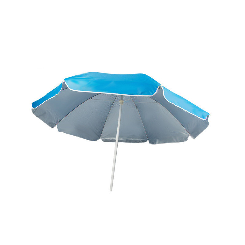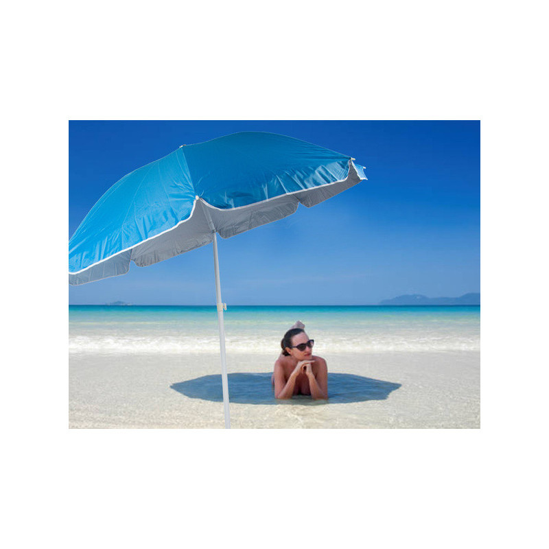 Ez a multifunkcionális strandernyő szolgál védelmet a naptól és a szél ellen. Biztosít menedéket a forró napokon, valamint védelmet az elhaladó eső ellen. Az anyag speciális szerkezete visszaveri a káros UV sugarakat. Emellett védelmet nyújt a szél és a laza homok ellen is. Az ernyő alkalmas a kertben vagy a kiskertben való használatra is. Az ernyő magassága személyes preferenciák szerint állítható. A nap szögétől függően az ernyőt enyhén döntheti jobb védelem érdekében. Az ernyő modern kialakítása erőssé és ellenállóvá teszi a szélrohamokkal szemben.