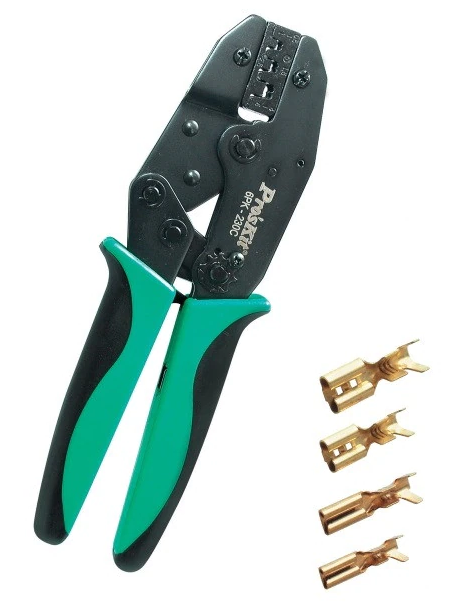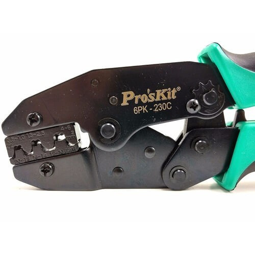 rendelkező saruzó fogókat! A 220 mm nagyságú 6PK-230C típusú saruzó fogó racsnis áttétellel, valamint automatikus reteszeléssel lett ellátva. Kiválóan alkalmas szigeteletlen saruk préseléséhez 0,5 - 6 mm²-ig. A termék előnye, hogy hibás préselésnél a fogó reteszelése oldható, továbbá 6 féle nyomaték kiválasztására van lehetőség.