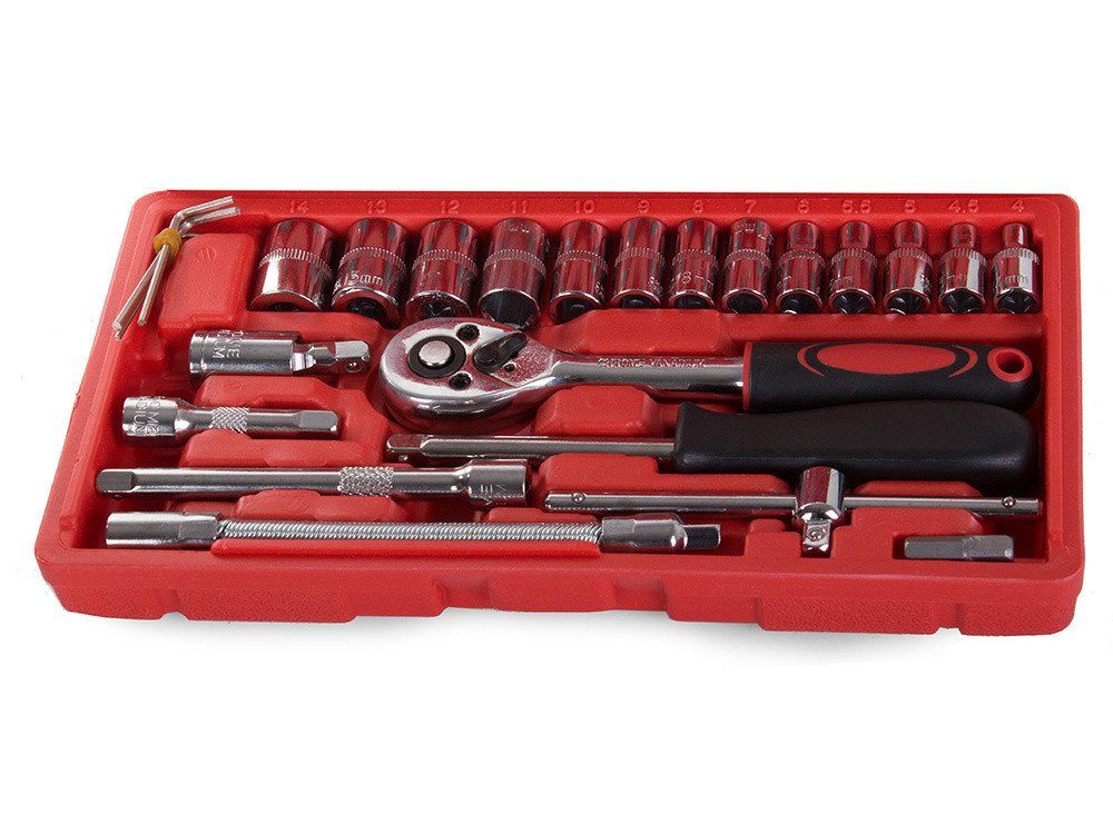 A mellékelt fejek sokfélesége lehetővé teszi az autó-, beltéri- és kerti javításokat. Szettünk kiváló minőségű króm-vanádium acélból készült, ellenáll a törésnek és a deformálódásnak. Az egészet egy praktikus tokba csomagoltuk, ahol minden szerszámnak megvan a maga helye.