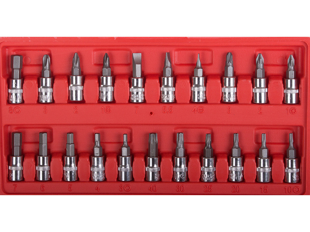 Mit rejt a termék doboza? 6 db TORX csavarhúzó bit: T10; T15; T20; T25; T30; T40 6 csavarhúzó bit, hatszögletű, HEX: 3, 4, 5, 6, 7, 8 3 lapos csavarhúzó hegy: 4, 5,5, 7 3 kereszt típusú csavarhúzó hegy: Ph1, Ph2, Ph3 3 kereszt típusú csavarhúzó hegy: Pz1, Pz2, Pz3 13 dugós bit: 4 mm, 4,5 mm, 5 mm, 5,5 mm, 6 mm, 7 mm, 8 mm, 9 mm, 10 mm, 11 mm, 12 mm, 13 mm, 14 mm 3 hatlapfejű kulcs: 1,5 mm, 2,0 mm, 2,5 mm 1/4"-es racsni Rugalmas hosszabbítás 1/4": hossza 14 cm 1/4"-es tológomb: 11 cm Csavarhúzó gomb 1/4" fogantyúval: 15cm 1/4" hosszabbítás: 5cm 1/4" hosszabbítás: 10 cm Tip adapter Kardáncsukló