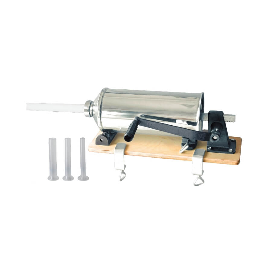 A rozsdamentes acélból készült töltővel gyorsan és egyszerűen készíthet kolbászt, vagy hurkát. A töltőhenger kapacitása 4 liter. Ha hosszú ideig nincs használatban a gép, ajánlott olajjal lekenni, ez megvédi a terméket.