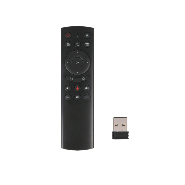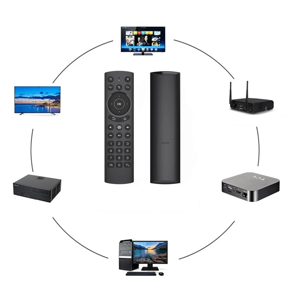 Hangvezérléssel is irányítható. Egérként is funkcionál, lekövetve a kezed mozgását. A távirányító háttérvilágítással rendelkezik. Android TV Boxhoz és SHILED TV –hez.