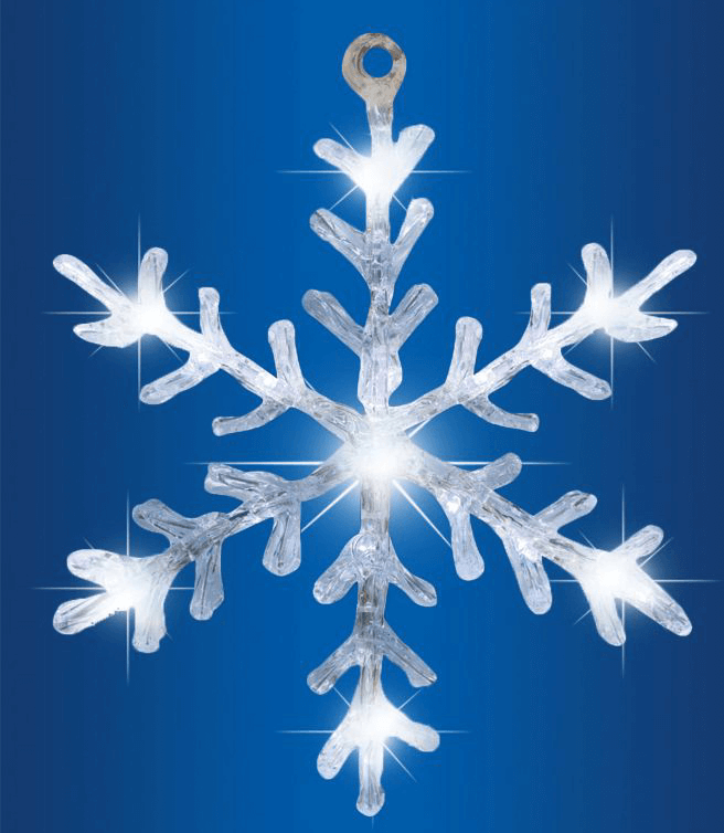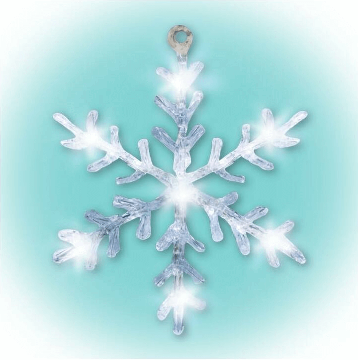 A hókristály igazán népszerű ablakdísz forma, hiszen ez szimbolizálja leginkább a telet és a karácsonyi ünnepeket. Ez az ablakdísz világítását összesen 16 db hidegfehér LED biztosítja. A dísz ideális kiakasztásához 50 cm-es hosszúságú vezeték tarozik. A hókristály alapanyagát átlátszó akril képezi. Tápellátása elemmel oldható meg.