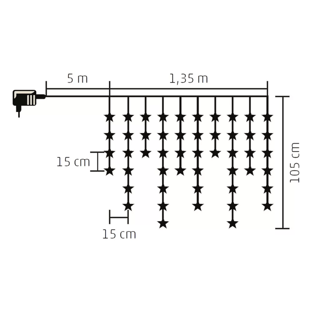 A füzér hossza 1,35 m, amelyen 50 db melegfehér, vagy hidegfehér LED csillag világíthatja be az otthodat és ezáltal meghitt, békés karácsonyi hangulatot teremt a beltéri helyiségekben. Az állófényű 5 cm es diszkréten ragyogó csillagok között minden füzérben a legalsó csillag villog, így még varázslatosabb ünnepi hatás érünk el.