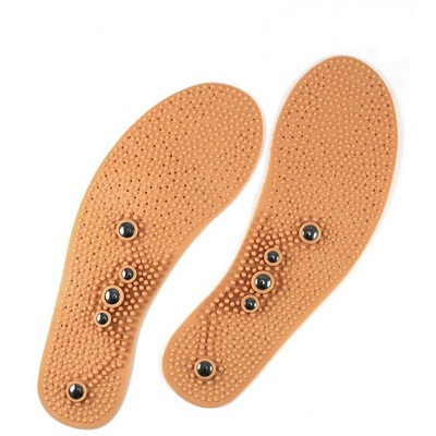 A talpbetétet kitöltő különleges anyag javíthatja a láb vérellátását, masszírozó hatásán keresztül pedig csökkentheti a láb és derékfájdalmakat. A rajta lévő 2 x 5 db mágnes arányosan elosztja a lábra nehezedő terheket, az elhelyezett mágnesek pedig stimulálhatják talp nyomáspontjait sétálás közben.