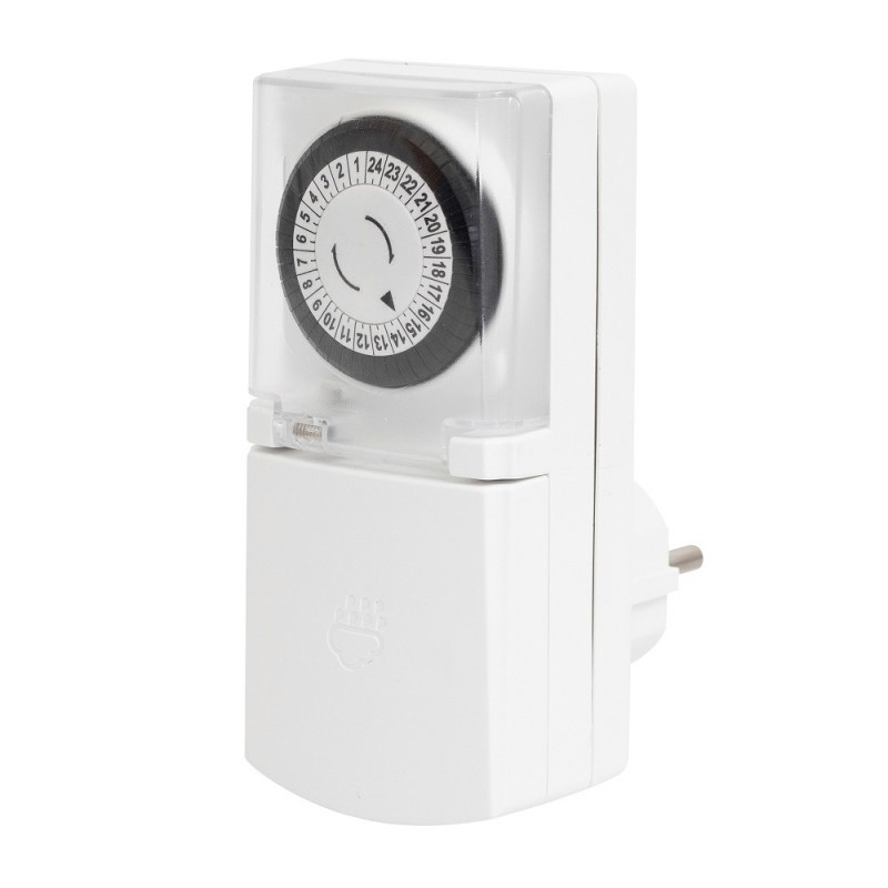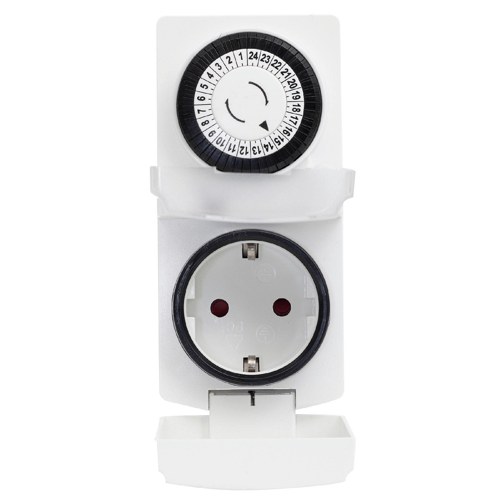 Ez a kapcsolóóra IP44 védelemmel lett ellátva, így ideális kertekbe, kültérre. Csatlakoztass olyan elektronikus eszközt az órába, amelyet csak egy bizonyos ideig szeretnél használni, majd azt a beállított idő után a kütyü lekapcsolja az áramról, ezzel is energiát megtakarítva. A termék 30 perces időintervallumokban állítható be, valamint naponta ismétlődő kapcsolásokra alkalmas. Az óra gyermekzárral lett ellátva, így a kicsik véletlenül sem tudnak belenyúlni.