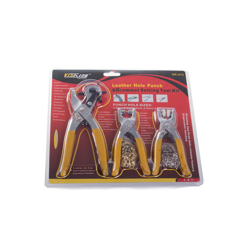 A bőr eszközkészlet egy olyan szett eszköz, amellyel könnyedén be tudsz illeszteni patentokat, gyorszárakat és lyukakat készíteni övekbe, cipőkbe stb. A szett három bőrmunka eszközt tartalmaz, valamint egy készlet feszítő tűket és szegeket.