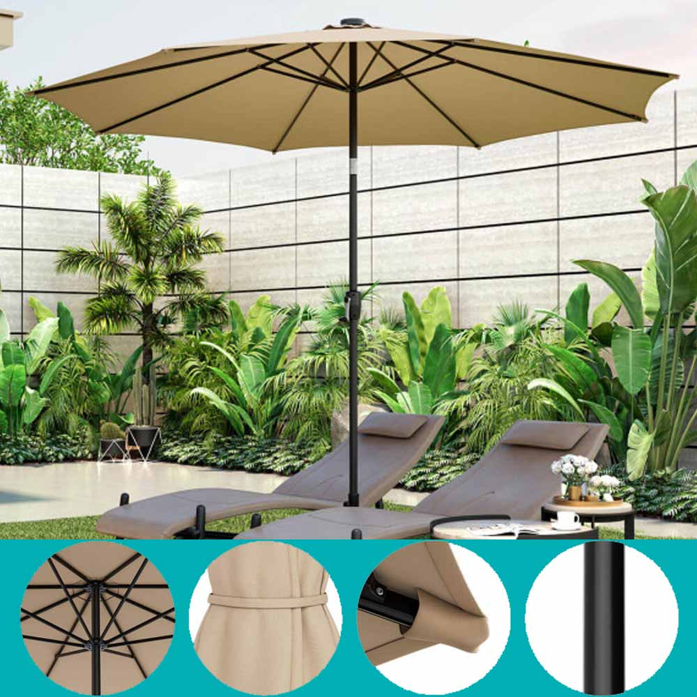Extra nagy méretű napernyőnk elegendő árnyékot nyújthat az egész családnak akár a kertben, a medence mellett, vagy egy szabadtéri ebéd alkalmával. Az ernyő 2,7 méteres átmérővel rendelkezik és dönthető, így beállíthatod, hogy a megfelelő pozícióban álljon. Teljes magassága 2,25 méter, így kényelmesen elfértek majd alatta. Talp nélküli kivitel!