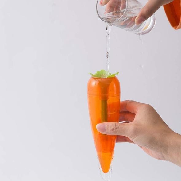 Szereted a virágokat, de hajlamos vagy elfelejtkezni a locsolásukról? Utazni készülsz és aggódsz a hogylétük miatt? E miatt ne légy nyugtalan, csak bízd az a mókás és kreatív megjelenésű répa csepegtetőre! A cserepes virágok és egyéb szobanövényeid rendkívül hálásak lesznek érte. Sőt, többé nem lesz probléma ha a zsúfolt napi teendőid mellett néha, néha megfeledkezel a növényeidról. Ez a különleges csepegtető egy töltéssel képes akár 7! napon keresztül is gondozni a virágaidat! Használata roppant mód egyszerű. Csak töltsd fel vízzel az öntözőt, majd helyezd a cserepes növény talajába a csepegtető cső részét. A répa szára jelzi a vízszintet, hogy mikor kell utántöltened. A termékkel garantáltan biztosíthatod a talaj nedvességtartalmának egyenleteségét, így hosszabb ideig is ki fogják bírni a növényeid locsolás nélkül A használatával elkerülheted a kiszáradás, valamint a túlöntözés kockázatát. A mókás megjelenése tökéletesen fog mutatni a növényeid mellett.
