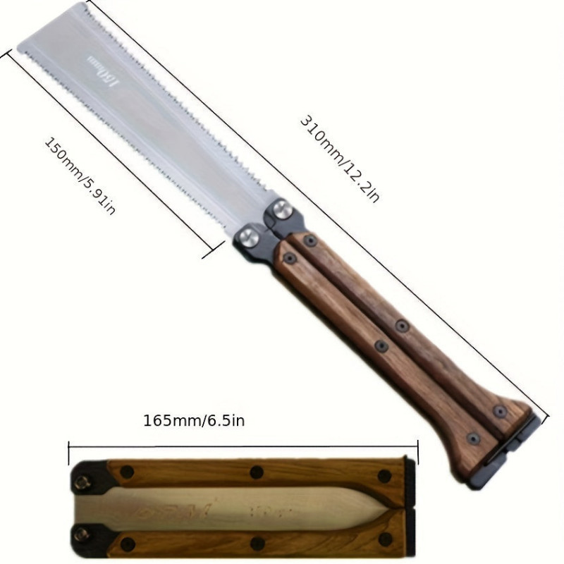 Termékleírás: Ez az összecsukható fűrész a legmenőbb dolog, amit valaha láttál! Ideális kempingezéshez, túrázáshoz vagy bármilyen szabadtéri kalandhoz. Kompakt mérete miatt könnyedén magaddal viheted bárhová, és a biztonsági zárórendszerrel könnyen és biztonságosan használhatod. A rozsdamentes acél penge éles és tartós, így könnyedén vágja át a fát vagy a gallyakat.