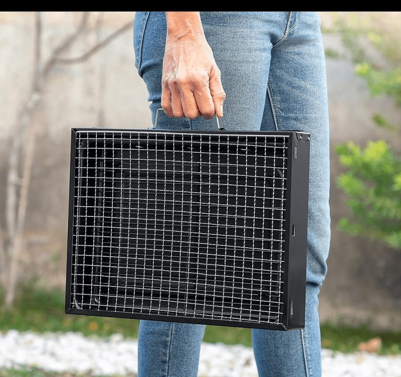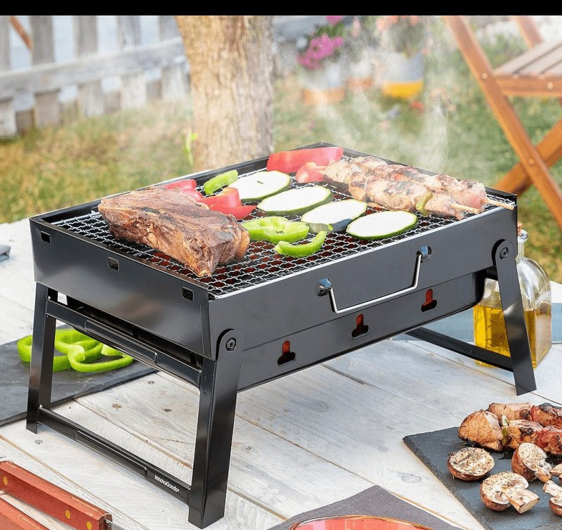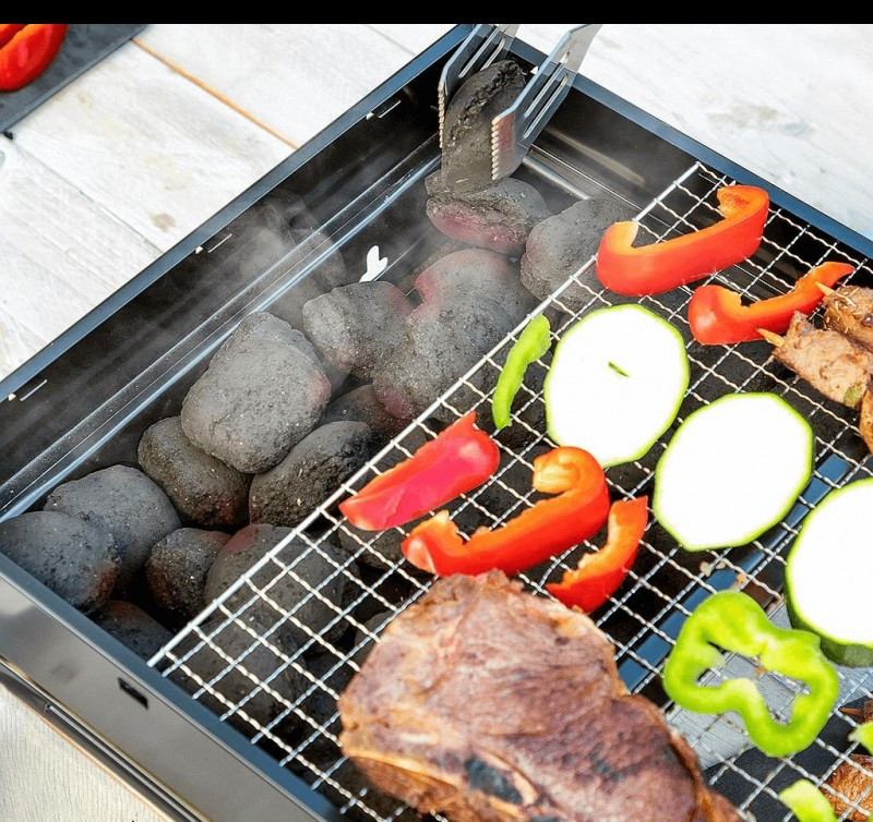 Rendkívül praktikus és kézreálló asztali faszéngrill, amely modern, összecsukható és hordozható kialakításának köszönhetően bárhová könnyedén szállítható. A könnyű szállítás érdekében szellőzőnyílásokkal és hordozófogantyúval rendelkezik. A kivehető sütőrács lehetővé teszi, hogy bármikor könnyedén hozzá lehessen adni a szenet. Ezenkívül tartalmaz egy alsó védőrácsot is, amely belül, a grillsütő alján helyezkedik el, és amelyre a faszén (max. 1,5 kg) helyezhető.