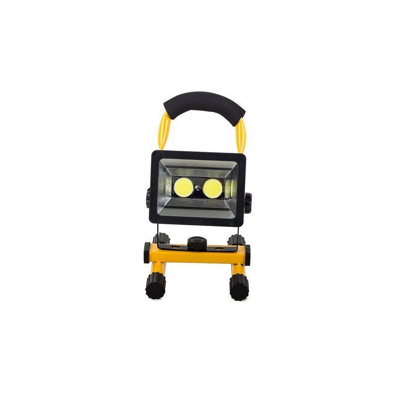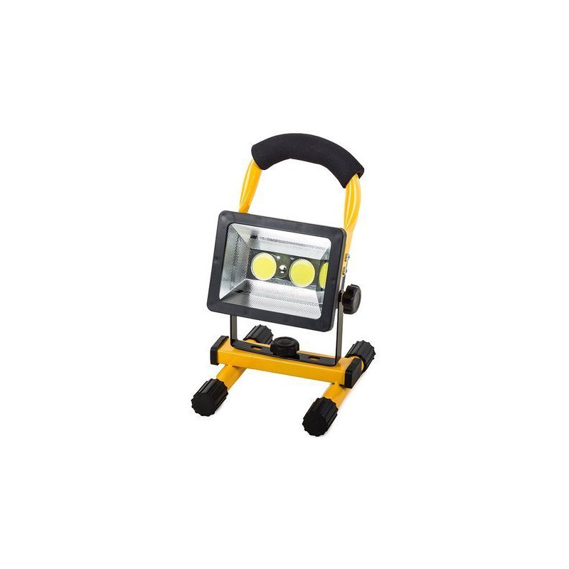 A HALOGEN LED COB 30W ÚJRA TÖLTHETŐ FLOODLIGHT HORDOZHATÓ LÁMPA az ideális módja annak, hogy fénnyel világítsd be a raktárakat, üzleti kirakatokat, pincéket, műhelyeket, hátsó udvarokat, stb. Nagyszerűen teljesít kirándulásokon, rallykon vagy egyszerűen a szabadban. A fény kimenete megfelel egy klasszikus 300W-os halogén lámpának. Az lámpa időjárásálló, IP65 besorolással rendelkezik. A hordozható lámpa kényelmes fogantyúval rendelkezik, amely puha szivaccsal van borítva, így bárhol használható. Emellett állvánnyal is rendelkezik, amelyre a lámpát lehet csavarni és 360 fokban lehet forgatni. Vagy a halogén lámpa falra is rögzíthető egy tartóval, és a dőlésszög állítható.