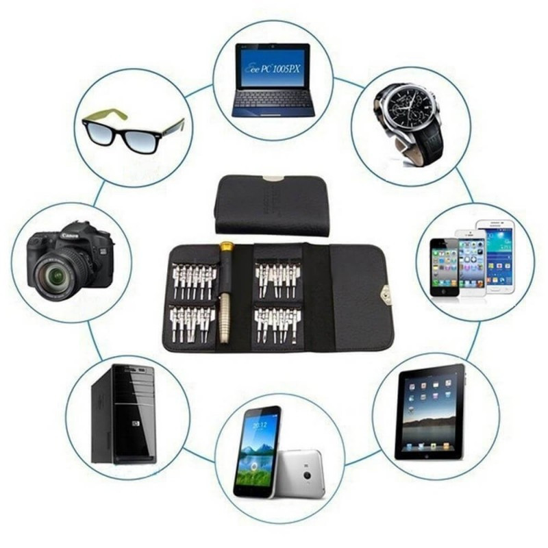 A szerszámkészlet mindent tartalmaz, amire csak szükséged lehet javítási munkálatok közben. Használhatod karórák elemcseréjéhez, számítógépszereléshez, mobiltelefon és szemüveg javításhoz. Segítségével rendezetten tárolhatod a szerszámaidat, a tokban elhelyezve könnyedén megtalálod a szükséges csavarhúzót.
