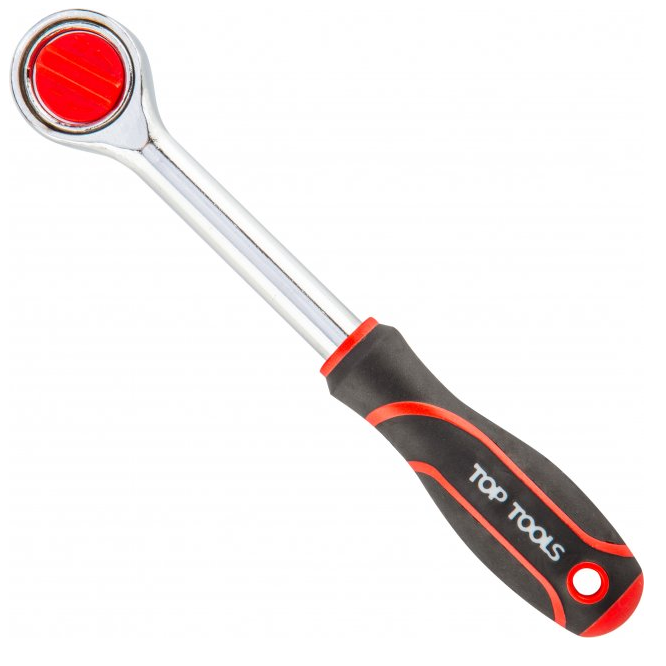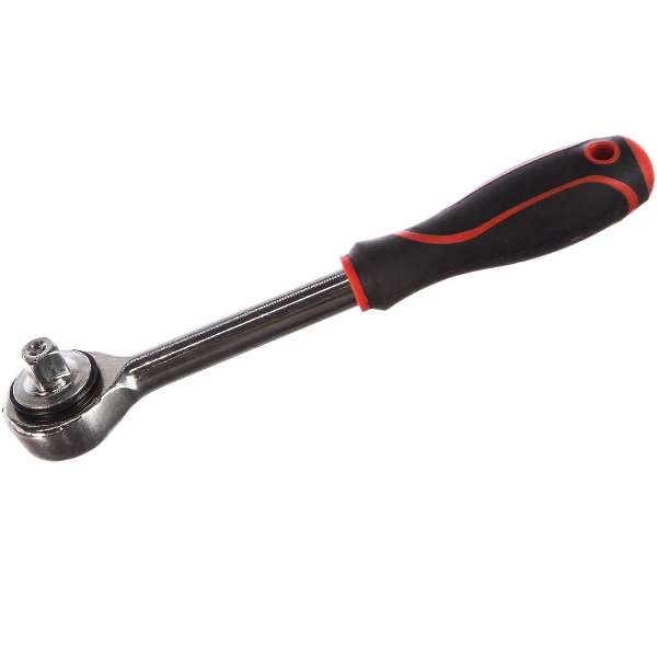 Ez a racsnikulcs a menetes csatlakozások gyors felszereléséhez készült. Csúszásmentes, gumírozott fogantyúval lett készítve. A 3/8" csatlakozó négyszög golyós zárral biztonságosan tartja a különböző méretű foglalatokat, hosszabbítókat és adaptereket. A kapcsolóval ellátott racsnis mechanizmus biztosítja a zökkenőmentes működést és lehetővé teszi a kulcs gyors irányváltoztatását.