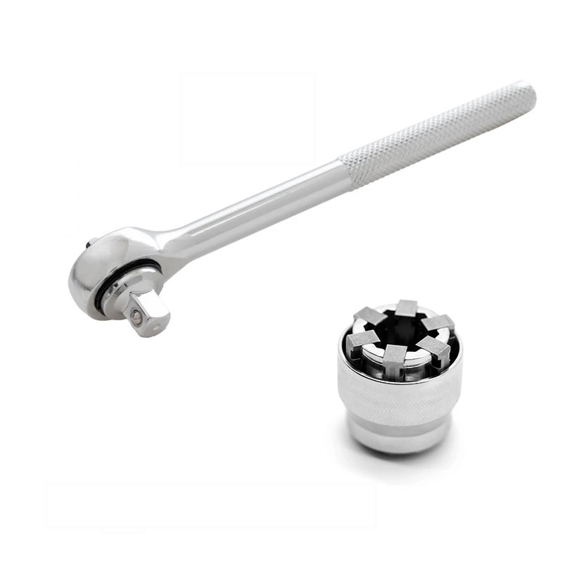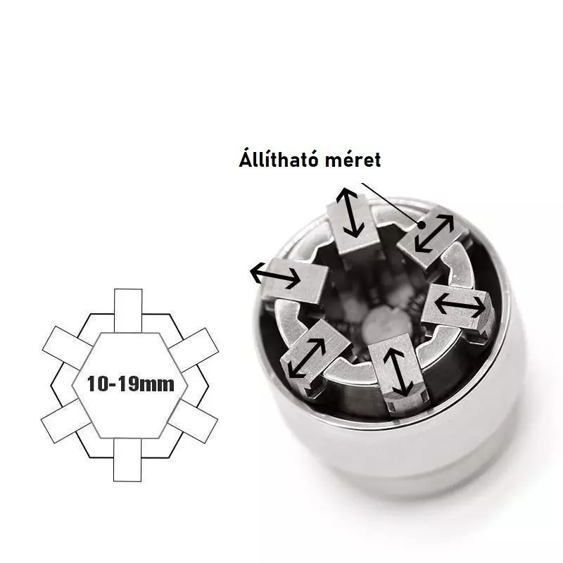 Ez a készlet 1 darabos, mégis a legtöbb anyához megfelelő méretű. Csavarosan állítható fejének köszönhetően mindig a tökéletes méretet képes nyújtani. A szett része még egy racsnis kulcs, amire egyszerűen rá lehet illeszteni szabvány illesztéssel ezt a különleges csavarkulcsot.