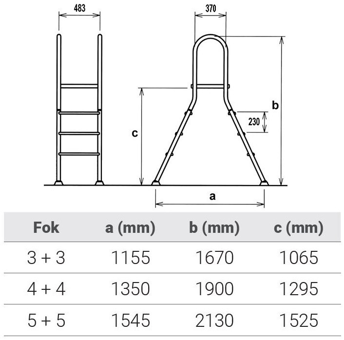 Rozsdamentes kétágú létra, 3 + 3 fokos, 1 m magas, magas minőségű anyagból, könnyű és stabil, könnyen hordozható