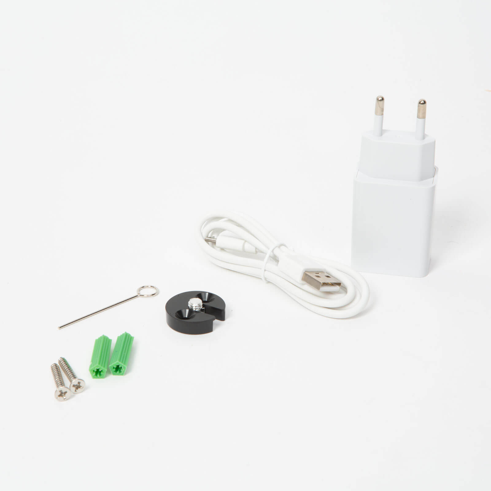 Funckiók: (Értesítés mozgásérzékelés esetén; Távvezérlés, távoli hozzáférés; Állítható minőségű élőkép továbbítás; Mozgáskövetés funkció; Állókép készítés funkció; Beépített mikrofon és hangszóró, akár kétirányú beszélgetéshez; Automatikus felvételmentés MicroSD kártyára (a kártya nem tartozék); Felvétel megtekintés memóriakártyáról okostelefonnal; Időbélyeg rögzítése a felvételre; Rögzített kép tükrözése; Mennyezetre is rögzíthető; Állvány előkészítés; Csúszásmentes, gumírozott talp; USB tápellátás + töltőfej)