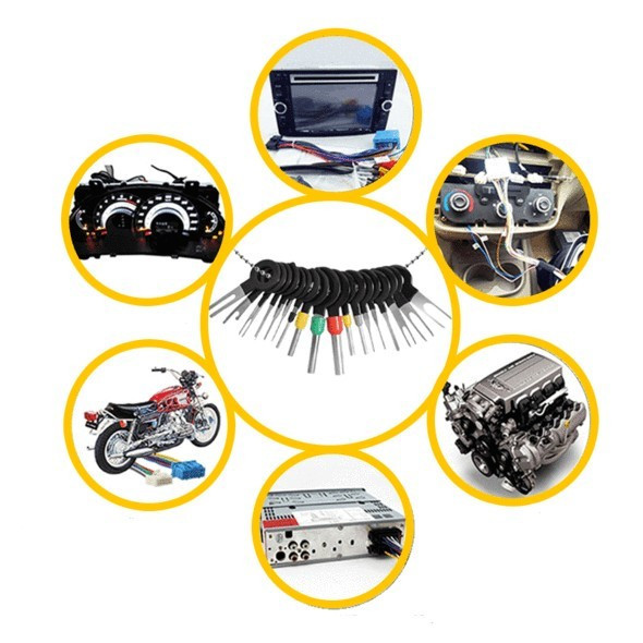 A Terminál eltávolító készlet tulajdonságai: - Anyaga: Acél rugólap és műanyag - Könnyű kezelhetőség - Különböző kialakítású fejek - Károkozás nélkül távolítja el a csatlakozókat - Univerzális használat - 38 db-s készlet Mit rejt a termék doboza? - 38 db-s Terminál eltávolító készletet